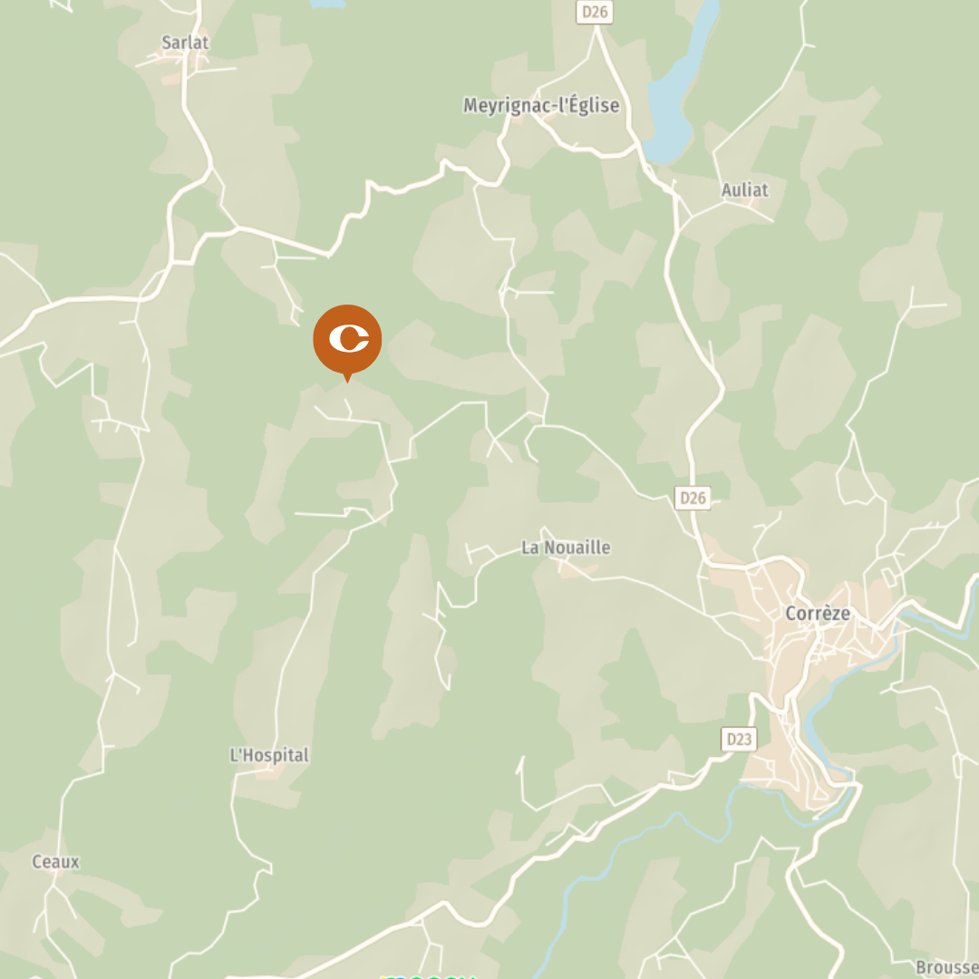 Go to the village of Corrèze (19800), because the huts are about 4km away. At the exit of the village in the direction of Saint Augustin at a place called ROC BLANC, turn left in the direction of MIERS and LE PEUCH, pass the small pond, turn left again, always in the direction of MIERS and LE PEUCH. In LE PEUCH, turn right towards MIERS then a little further on turn right again. Arrived at the entrance of the place called MIERS, turn and go down to the right, at 50m you have arrived!