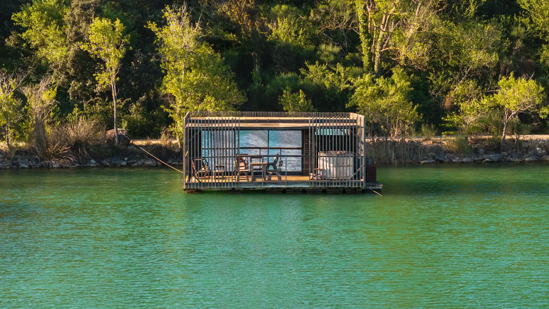 À deux pas d’Avignon, sur les rives du lac de la Lionne, 20 cabanes flottantes, végétalisées ou sur pilotis offrent un séjour provençal hors du temps. Paniers gourmands composés de produits locaux, couchers de soleil sur l’eau et cabanes dog-friendly (sauf Élixir et Utopie) : une escapade douce et dépaysante.